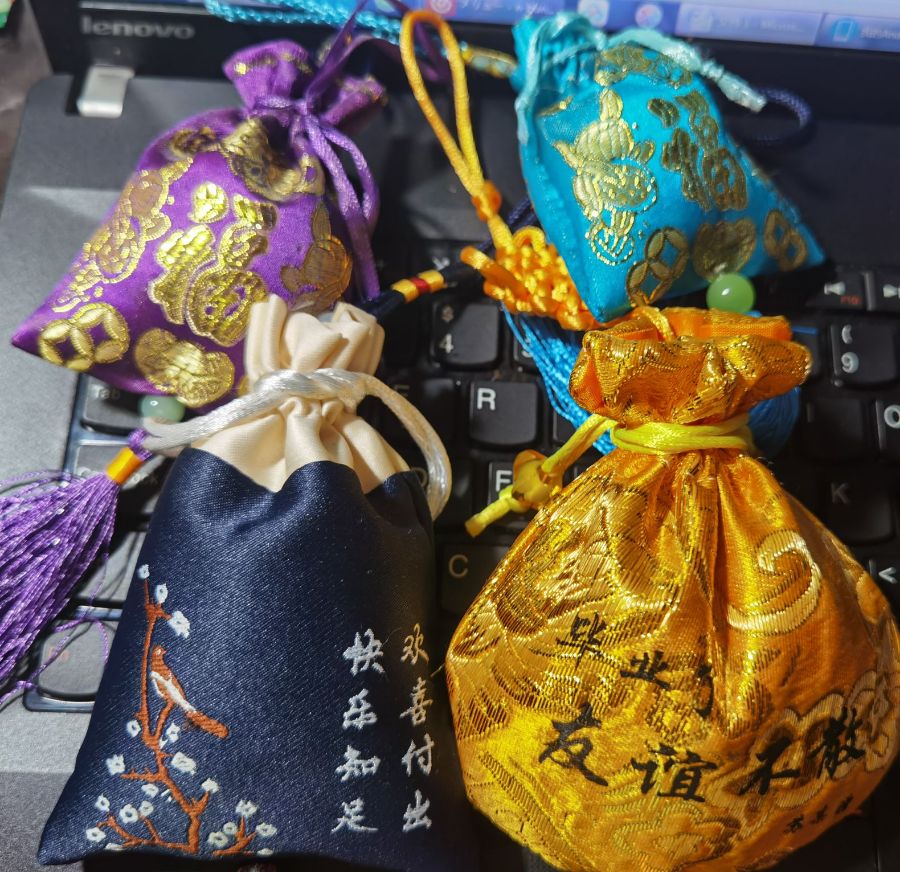 就在这周,我收到了许久没有联系过的初中同学的一条消息:“我做了香囊放在了班主任办公室,只有30个,先到先得哦!”看到了这个消息的我直接从床上跳了起来,和以前的同学聊了聊发现他好像给每个人都发了一条,于是乎我们几个老同学商量好一块去探望老师顺便拿香囊。