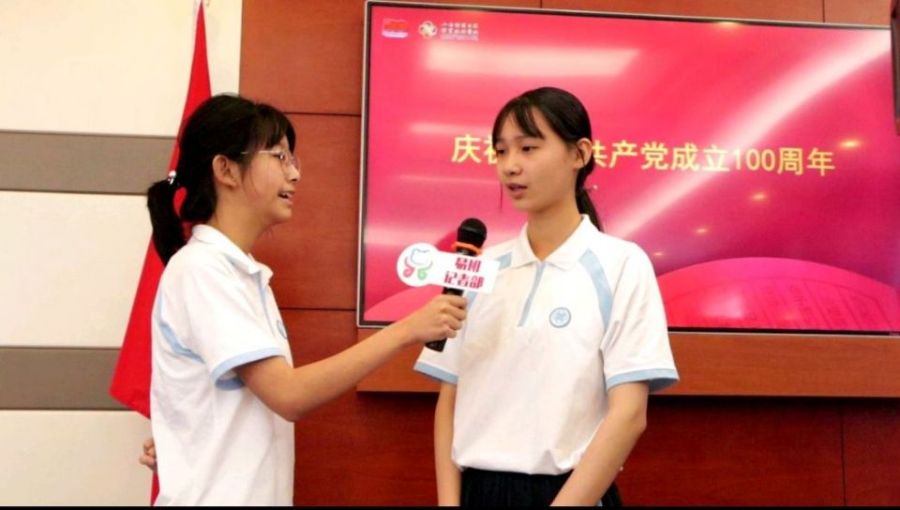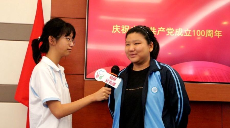 在看到四名共青团员和少先队员代表的合唱时,来自1903班的俞婷激动地说道,自己对党一直十分向往,她希望接下来能有机会入团然后入党,为国家进一步做出自己的贡献。共产党的成立把国家从水深火热之中解救出来,她非常感谢共产党,感谢中国。