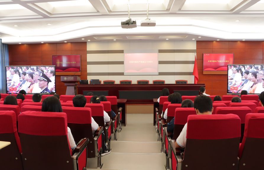 世纪沧桑巨变,百年风雨兼程。历史的风,翻开了100年前的那一页。那一年,我们伟大的共产党诞生了!它照亮了中国走向繁荣富强的道路,我们的革命也从此有了方向。而在这共产党成立一百周年之际,上海新闻出版职业技术学校的学子们聚集在阶梯教室中,为了迎接建党100周年,观看大会直播。