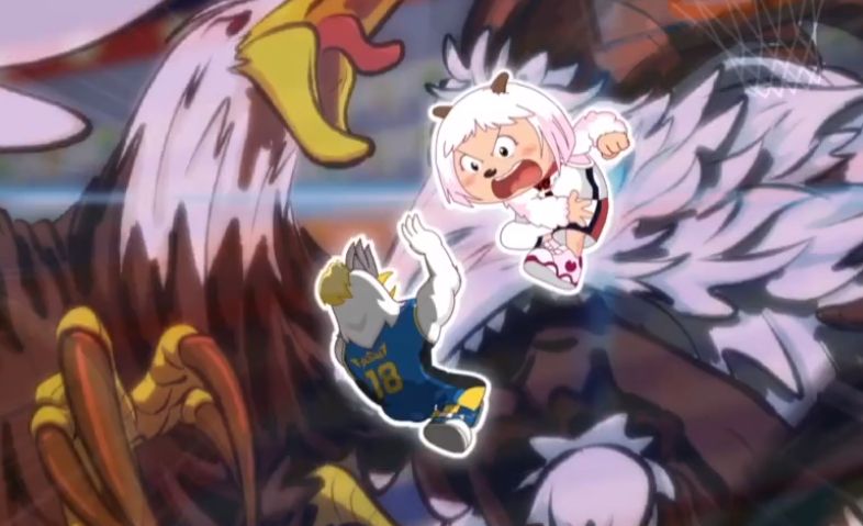 暖羊羊是守护者队的中锋,身披11号球衣,体型较为高大的她和11号的球衣很自然就让人想到篮球巨星姚明。只不过在剧情中,暖羊羊的表现和姚明还是有一些差距,她更像是一个蓝领中锋。