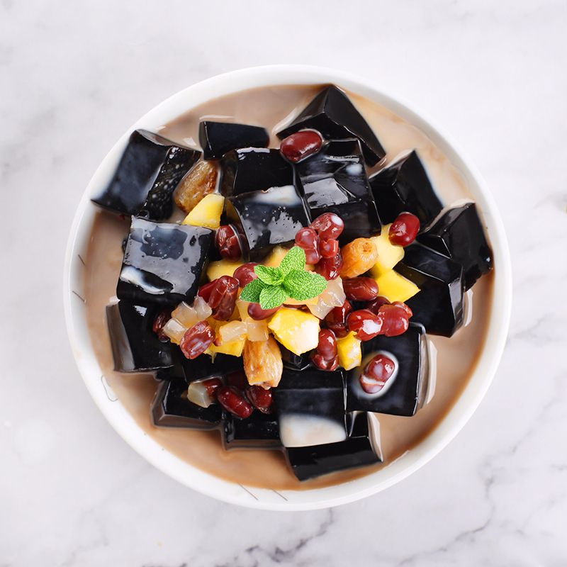 烧仙草、龟苓膏、黑凉粉这三种食物,颜色一样,我都分辨不出来有什么不一样。黑凉粉是选用草本植物仙草(凉粉草)以先进工艺提炼而成,有清热解暑、风味清香,最适合夏天吃。在广东地区吃仙草解暑的习惯,仙草有健脾利胃、消除水肿等作用。黑凉粉是我们当地夏天解暑解渴的美味小吃,滑嫩爽口、香甜美味。