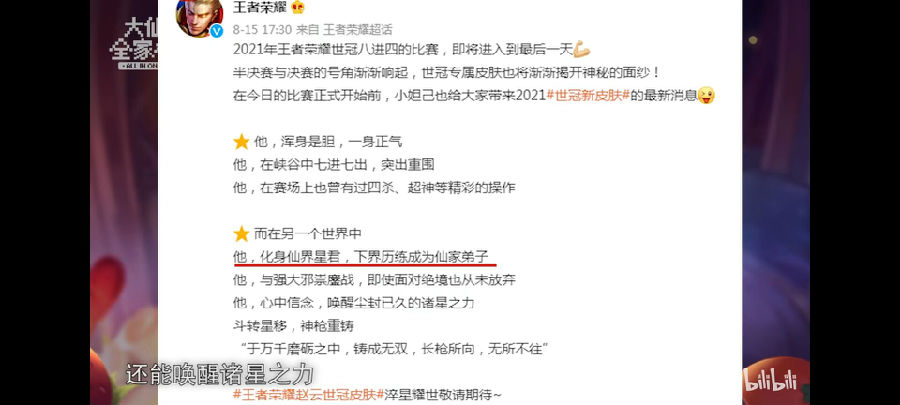 最令人振奋的就是出场动画中的语音台词,已没有星辰,我们也要做那唯一的光,突然觉得赵云化身为迪迦。当然从这点来看,赵云的世冠皮肤是与李信的一念神魔有相似之处的,毕竟这两款皮肤同属一个系列!