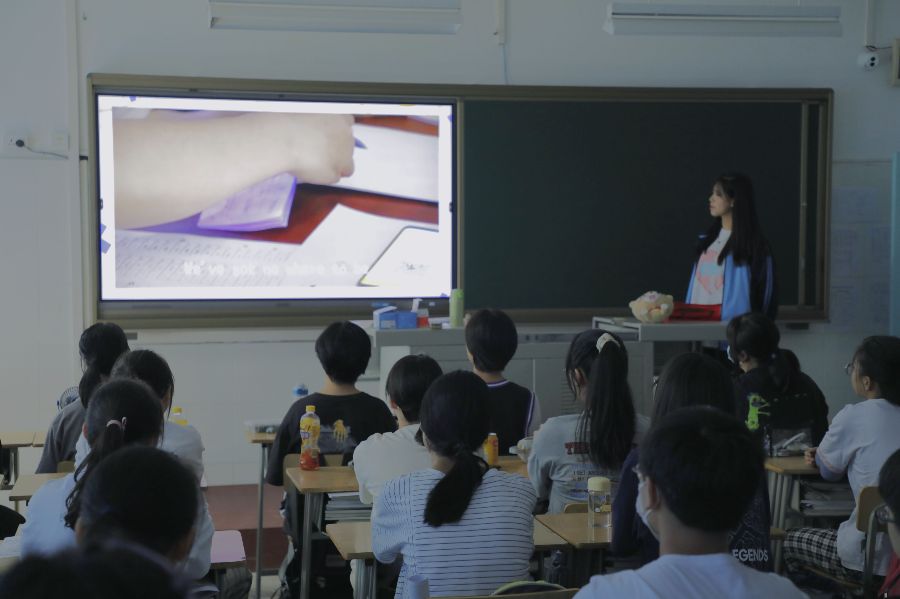 11:00各部门部长与副部长前往各自负责的第一个班级发放报名表同时播放易班招新宣传视频,视频中展示了易班工作站过往的精彩有趣的活动总结,呈现了站长、副站长、各部门部长以及指导老师的热情仔细的介绍说明。新生们都全神贯注地抬头看着宣传视频。通过视频,新生们了解到填写报名表的注意事项以及各部门的工作内容。视频观看完毕,各部门的部长和副部长都按照宣传时间有条不紊地前往各班进行部门宣传,解答新生们对于部门的疑惑。当越过台下那一张张认真专注的脸,一双双充满光亮的眼,听见一声声接连不断的提问,感受到了新生们对于易班工作站的热情与向往。在提问中,遇到很多同学都担心想去的部门自己没基础的情况。学姐们解答道没有基础是没有关系的。只要有兴趣就可以勇敢尝试,在纸上勾选自己感兴趣的部门,扫描相关部门的招新二维码就可以等候初试通知,在初试中大展身手!只要够有才,就相信大家都可以在易班闯出一片天地!