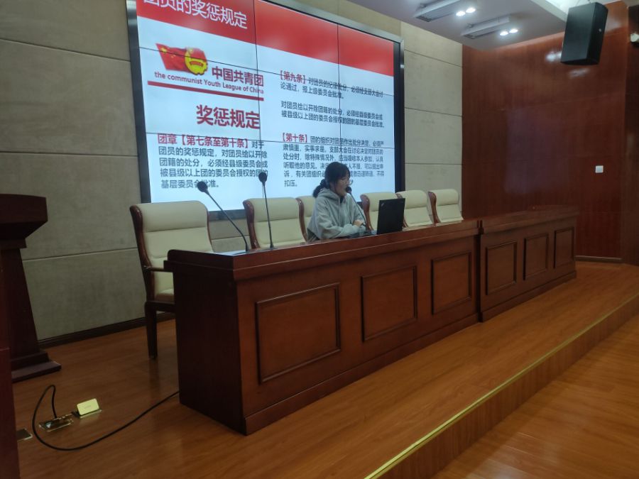 随后严朗宁同学为各位入团积极分子介绍了团员的申请条件、六项义务、规定等相关内容,并对各位入团积极分子提出了要求——思想端正、以身作则,时刻监督自己,并虚心向其他人学习。让同学们更加清晰地认识到作为一名有担当的团员并不是一件容易的事。