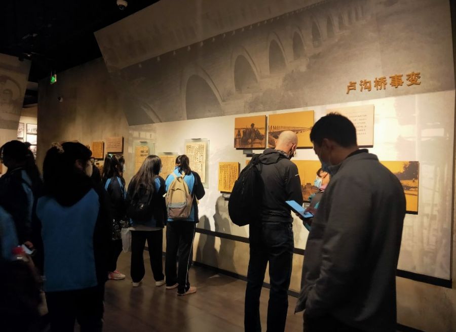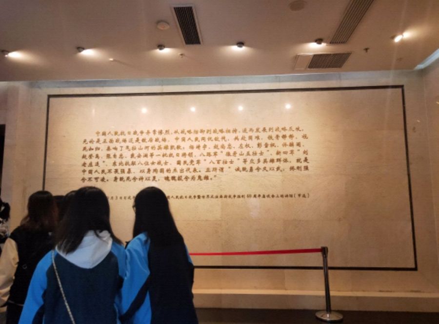 展馆内更是展示了当年的照片、书信以及地图,这些珍贵的历史遗物,让人进一步了解了战争的始末与细节,同时,馆内也设有人物雕塑,直观的为大家展示了战场的状况,雕像栩栩如生,穿插在展馆各处,同学们时不时驻足而观,认真阅读历史卡片。