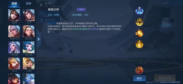 短暂解放轮回之印,3件神器回归原本的力量。大招持续期间,每次造成伤害会给自己叠加1层印记,再次点击大招会消耗所有印记将力量击出,基础为500(+60%法术攻击)点法术伤害,每层印记提升10%的伤害
