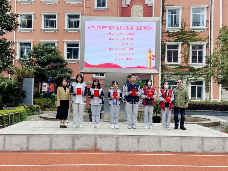 升旗仪式上,校领导为“党史.金融史”的学习活动征文获奖选手及的团总支、学生会各部门的新干事代表颁发奖状和授予胸牌 ,勉励他们继续奋发有为,为争做一名优秀的清荷学子而继续努力。