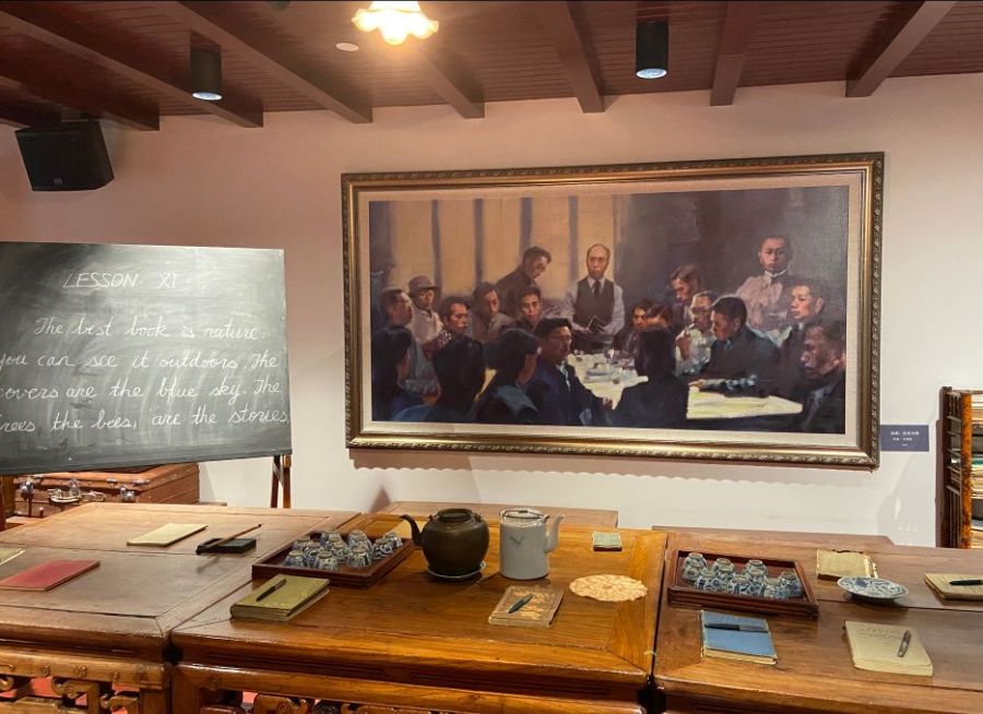 距今九十六年前,上海虹口召开的第四次全国人民代表大会开创了我党的建设新阶段,在那里,参会人员第一次提出两人无产阶级在民族革命运动中的领导权,坚持反对帝国主义,由此确立我们党在大革命时期的地位与目标。这样伟大精神就在弄堂深处的三层楼房中诞生,虽原址早在日军侵华战争中被夷为平地,但四大会址纪念馆逼真还原了阁楼形态,将四大的历史回响永留传唱。这处还原阁楼就布置在纪念馆的核心处黑板与文件、砚台与笔墨,994名代表全国党员在12天的隐秘会议下,将大革命推向前所未有的新高度。