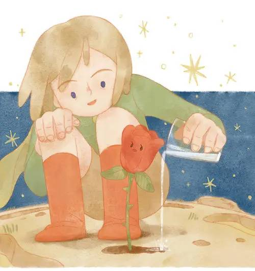 初读《小王子》时,小王子和玫瑰的关系并没有品味出来;再读,当年的纯真好玩不在,小王子与玫瑰的情爱却了然于心。如今才知道,小王子对玫瑰念念不忘。外出流浪的过程中,小王子时常提及玫瑰;与狐狸的相遇,如果勇敢地去爱,那么将会有一个新的结果,不过他却选择了回归。真爱,也许就像小王子一样渡劫。