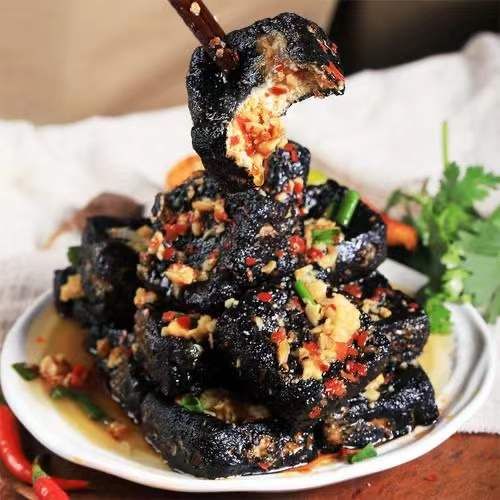 长沙臭豆腐是湖南特色美食小吃之一,是湖南省长沙市的一道传统特色小吃,属于湘菜,该小吃又被长沙当地人成为臭干子。其色墨黑,外焦里嫩,鲜而香辣, 焦脆而不糊、细嫩而不腻、初闻臭气扑鼻,细嗅浓香诱人。臭豆腐以优质黄豆为原料。制作工艺较为复杂,黄豆经过筛选、脱壳、浸泡、磨浆、过滤、煮浆、点浆、成型、划块、发酵等十道工序。呈贡臭豆腐质地软滑,散发异香。先人赞誉云:“味之有余美,玉食勿与传”。它不仅有很高的营养价值,而且有较好的药用价值。古医书记载,臭豆腐可以寒中益气,和脾胃,消胀痛,清热散血,下大肠浊气。常食者,能增强体质,健美肌肤。