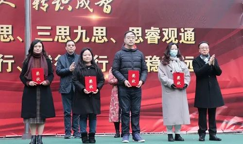 仪式上,校领导先后为2021年12月份行为规范示范班、2021年心理健康活动周“十佳黑板报”评选获奖班级、2021年上海市“新沪杯”中学生宪法法律知识竞赛和2021年职业体验日优秀课程评比的获奖师生进行了颁奖。