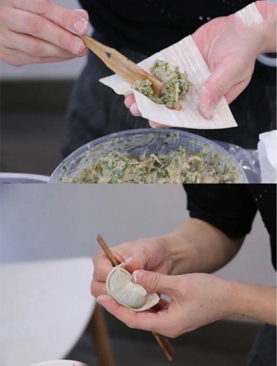 馄饨都是元宝形状的,中间包的圆圆的馅,两边的馄饨皮都是尖尖的,整个模样真的和元宝一般。轻轻咬下一口,皮薄馅厚,口感特别扎实,肉馅紧实,汁水四溢,软滑的馄饨皮入口劲道。植物清香的荠菜香中还加入了香菇,整个味道变得异常丰富,清爽夹杂着细腻柔滑的猪肉。清爽不腻,绝对是打开夏日胃口的最佳选择。