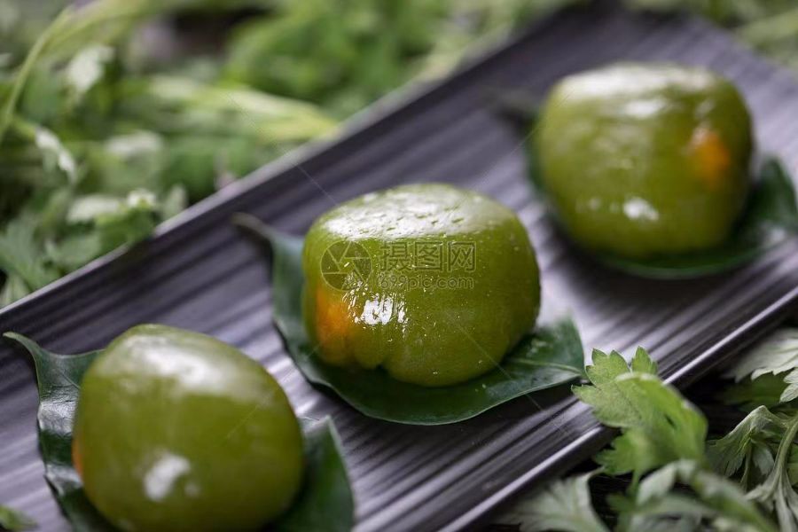 在寒日节的传统食品中还有一种“青精饭”,据《琐碎录》记载:“蜀入遇寒食日,采阳桐叶,细冬青染饭,色青而有光。”明代《七修类槁》也说:“古人寒食采杨桐叶,染饭青色以祭,资阳气也,今变而为青白团子,乃此义也”。清代《清嘉录》对青团有更明确的解释:“市上卖青团熟藕,为祀先之品,皆可冷食”。