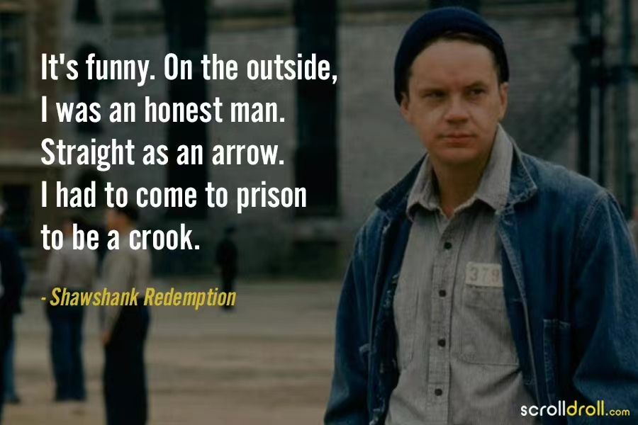 肖申克的救赎是一部拍摄于1994年的经典,故事发生在1947年,讲的是一个银行家安迪因为妻子有婚外情,酒醉后误指控用枪杀死了她和她的情人,被判了无期徒刑,意味着他将在肖申克监狱中度过他的余生。该片透过监狱这个强制使人失去自由,高度强调纪律的特殊背景来展现作为个人的人对时间流逝、环境改造的恐惧。