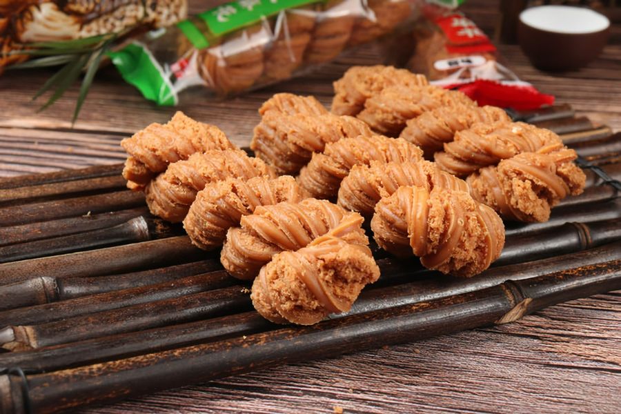 天津麻花是一道色香味俱全的传统名点。早在一百多年以前,在天津卫海河西侧,繁华喧闹的小白楼南端,有一条名为十八街的巷子,原来巷子之中有一家小小的麻花铺,字号唤作“桂发祥”。十八街麻花是经过反复探索进行创新,在白条和麻条中间夹一条含有桂花、闵姜、桃仁、瓜条等多种小料的酥馅,使炸出的麻花酥软香甜与众不同,创造出的什锦夹馅大麻花。其特点是香、酥、脆、甜,在干燥通风处放置数月不走味,不绵软、不变质。