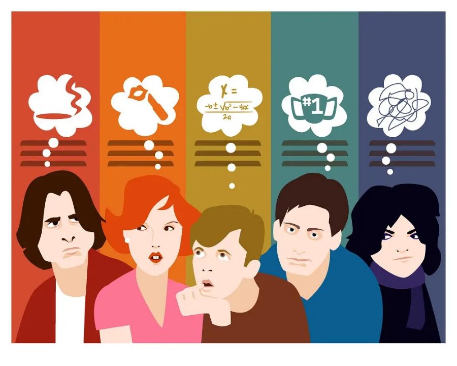 《早餐俱乐部》1985的一部老电影,偶然间在抖音上刷到了色调是我很喜欢的,就去看看了。值得一提的是这是青春类影片的始祖。但这并不是一般意义上的青春类电影,它其实并不“单细胞”,而是深入剖析了在美国校园“等级制度”下的各种角色的真实特点和想法。
