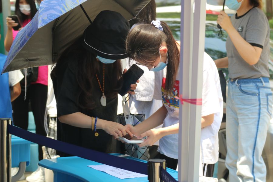 欢迎莘莘学子到来的同时,学校积极配合防疫措施,在校门口配备了抗原现场检测区,同学们在持有24小时核酸阴性证明的基础上,进行抗原检测,自行上传疫测达后方可进入校园。