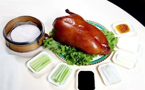北京烤鸭是具有世界声誉的北京著名菜,起源于中国南北朝时期,《食珍录》中已记有炙鸭,在当时是宫廷名菜。用料为优质肉食鸭,果木炭火烤制,色泽红润,肉质肥而不腻,外脆里嫩。北京烤鸭分为两大流派,而北京最著名的烤鸭店也即是两派的代表。它以色泽红艳肉质细嫩,味道醇厚,肥而不腻的特色,被誉为“天下美味