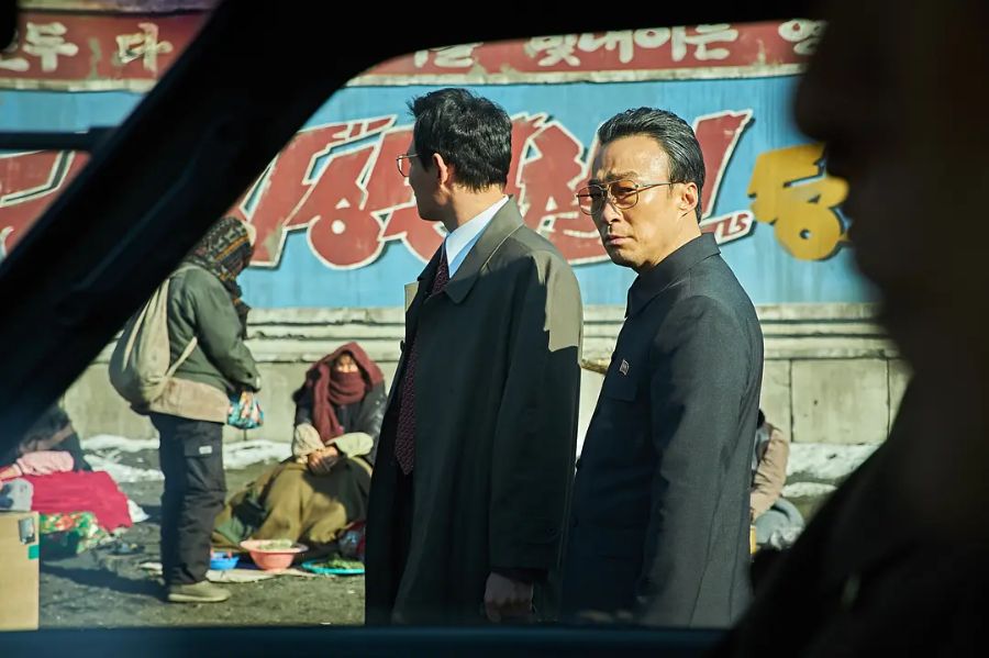 五年后的2005年,朝韩双方首次合作,李孝利和赵明爱代表朝韩双方握手问候,化解了长久以来的冰冻关系。隔着士兵与人群,双鬓渐白的男主凝望着远处的大门,C国卫兵簇押着在人群中苦苦寻觅着的李处长。时隔多年,两人再度重逢,隔着千山外水,李处长抬起手,露出了手腕上男主当年所送的假劳力士,男主也解开西装的扣子,露出了当年那个刻有浩然正气的领带夹,此时无声胜有声,相顾无言,惟有泪千行。