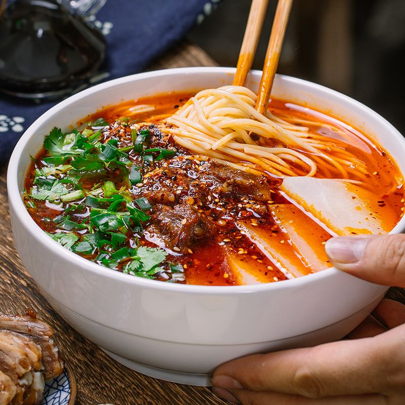 兰州牛肉面最早始于清嘉庆年间,甘肃东乡族马六七从河南省怀庆府苏寨村(河南博爱县境内)国子监太学生陈维精处学习小车牛肉老汤面制作工艺后带到兰州,经陈氏后人陈和声、回族厨师马保子等人的创新、改良后,以“一清、二白、三绿、四红、五黄”统一了兰州牛肉面的标准。在其后200多年的漫长岁月里,兰州牛肉面享誉天下,以肉烂汤鲜、面质精细而蜚声中外,打入了全国各地,赢得了国内乃至全世界范围内食客的好评和荣誉,是中国十大面食之一,并被国家确定为中式三大快餐试点推广品种之一,被誉为"中华第一面"。
