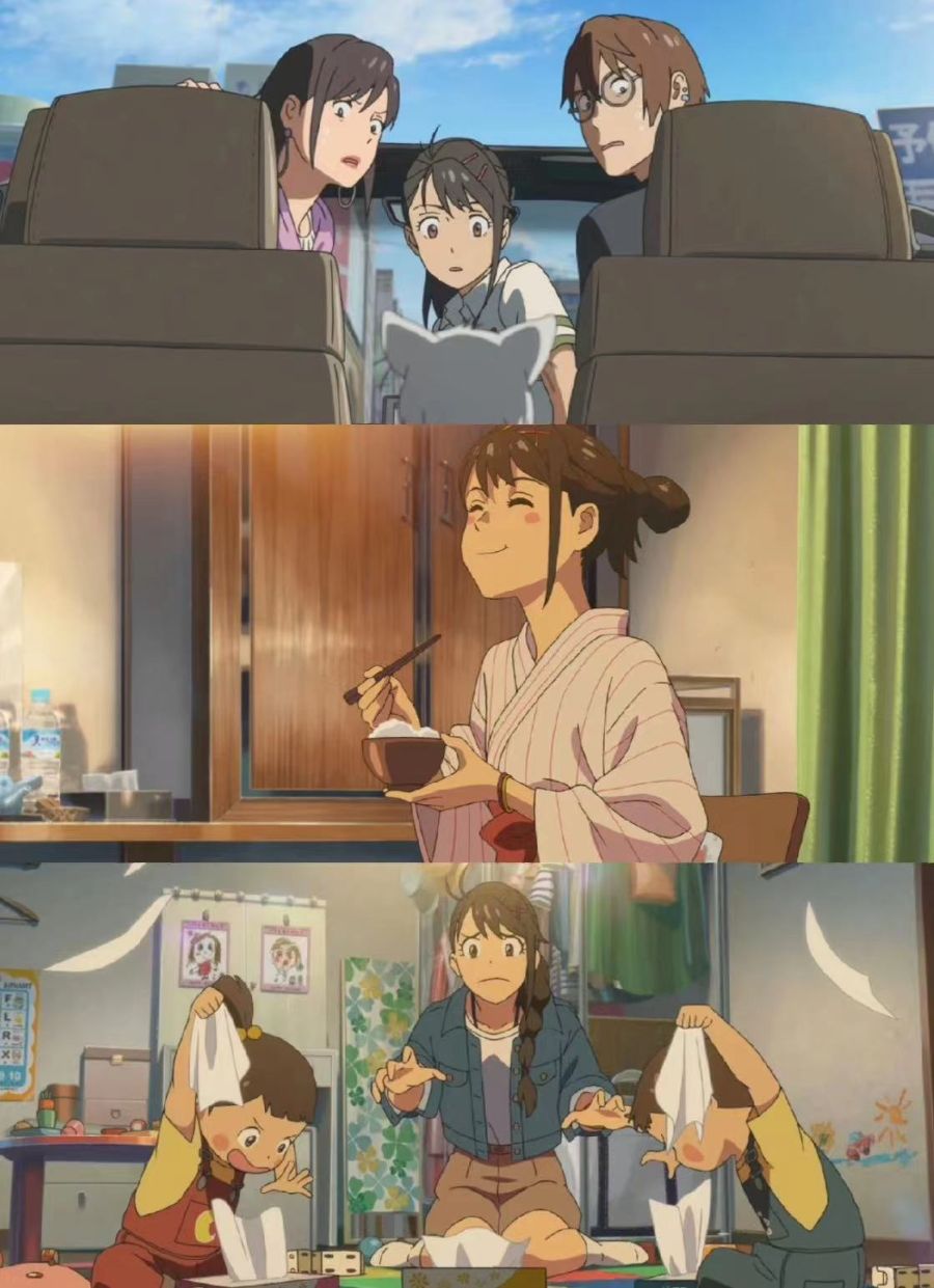 其实电影里还有好多的感情,大臣对女主的依恋,姨妈的同事对姨妈的喜欢,草太的同学与草太的友情,草太爷爷对草太的亲情……许许多多的这些,让这部短短两个多小时的电影更加有感染力,让人动容,值得一看。