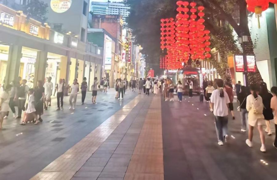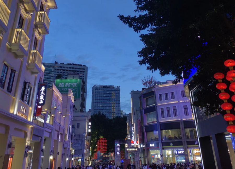 而抬头,也是一片繁荣景象,人山人海。我格外喜爱北京路各建筑的建筑风格。那里的每一个建筑在保留古建筑特色的同时,融入了当下的新风格,两者十分完美的结合了,也迎合了现在人们的审美。放眼望去,满满的历史气息,却又看上去“不旧”,反倒很新颖。这就是人民的智慧,劳动的结晶啊!