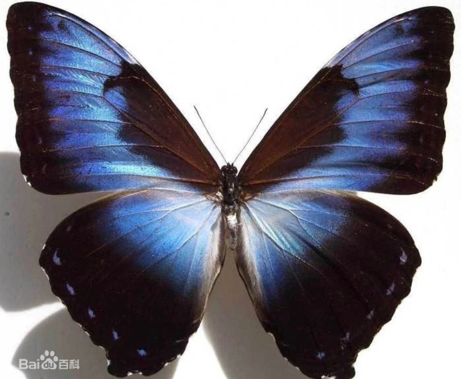 月神闪蝶(学名:Morpho cisseis)前足相当退化,短小无爪。前翅R脉5条,常共柄。卵半圆球形。幼虫头上有突起,体节上有枝刺,腹足趾钩1至3序中列式。蛹为垂蛹。雄闪蝶的翅上有绚丽的金属般光泽,这与其翅膀上有各种形状的鳞片有关,闪蝶的鳞片结构复杂,细微结构是由多层立体的栅栏构成,当光线照射到翅上时,会产生折射、反射和绕射等物理现象。翅的底面具有成列的眼状斑纹。生活史包括了卵、幼虫、蛹、成虫四个期,卵呈半球形,幼虫一般群集生活,主要取食豆科植物,分布于南美洲。