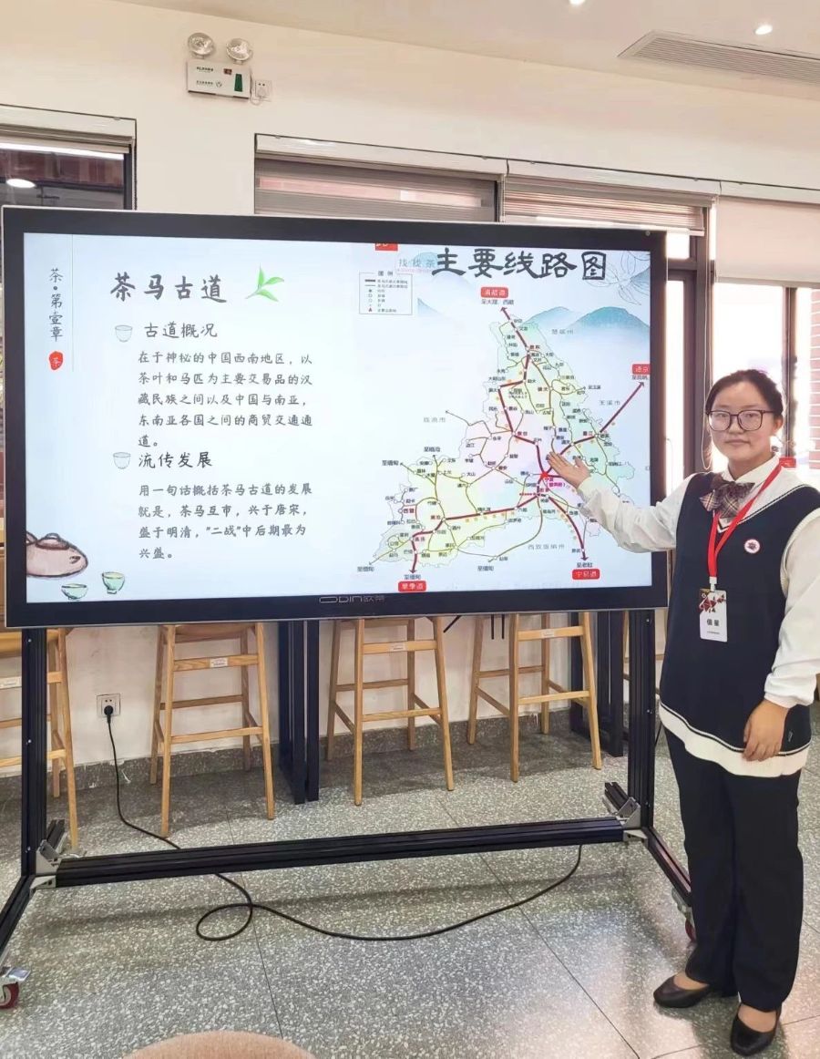 本次活动由22旅管3班的班长于梦蕊主持。首先,由朱欣怡介绍茶马古道,紧接着由沈思雨来介绍茶的起源以及各种不同茶的种类。虽然本次活动来参加的同学非常多,但大家还是尽量的保持了安静,认真的听同学们讲解。