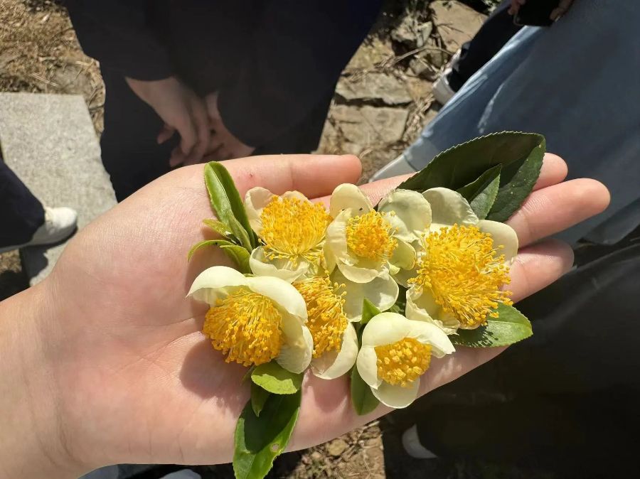 山路难走,但当同学们开始采茶时,那认真端详、仔细观察着每一株茶树,从叶到芽。那穿梭在茶树之间,闻着茶香,互相比对着自己手中挑选出的最嫩的那一叶,他们亲身感受到当年陆羽先生走访各地才写出集天下茶学之精华的《茶经》是对茶有多么的热爱与痴迷。沉浸式的采茶体验也大大提升同学们对茶文化的热爱,帮助他们学习茶文化,成为一名优秀的茶人。