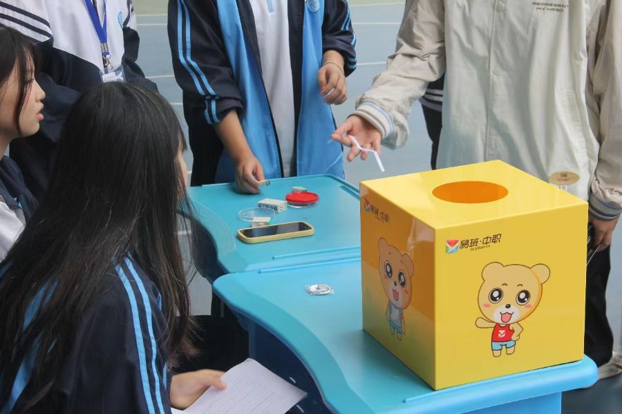 在易班熊与新生的合照中,活动拉开序幕。活动中,“眼疾手快”由为受大家的喜欢,游戏是单人作战,器材有8个手抓棒,按动开关后,倒计时三秒后,手抓棒会随机掉落,同学们需要快速做出反应,用手去接手抓棒,保证手抓棒不落地。只见同学们在准备活动时都转转手腕、脚腕,在机器面前微微屈膝,两只手放在胸前做好姿势,目光炯炯的看着每一个即将会掉落的棒子,随着棒子的落下,有的同学们开局非常顺利,凭借着良好的反应能迅速抓住后,握在手心,虽然有的时候会有小失误,但大家都会坚持完成游戏。无论结果与成败如何,大家的脸上都始终洋溢着幸福快乐的笑容,感受着易班大家庭的团结、友爱、热情的氛围。班主任钱路老师也向小记者分享到:希望同学们可以在易班中发挥自己的才华,像在本次活动中,可以通过和同学们的交流,发展自己的能力、表现自己的风采,希望同学们在易班可以学习到更多的知识,在这个大家庭里感受到更多的温暖。