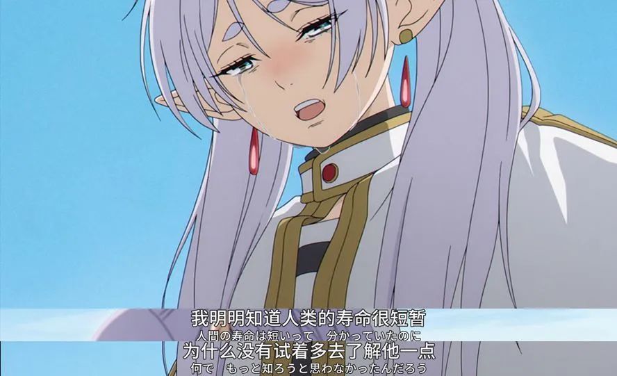 在辛美尔的葬礼上,芙莉莲意识到人类的一生不过区区几十年,和精灵上千年的寿命相比只是弹指一挥间,自己还没来得及多了解一些同伴,就已经阴阳两隔。