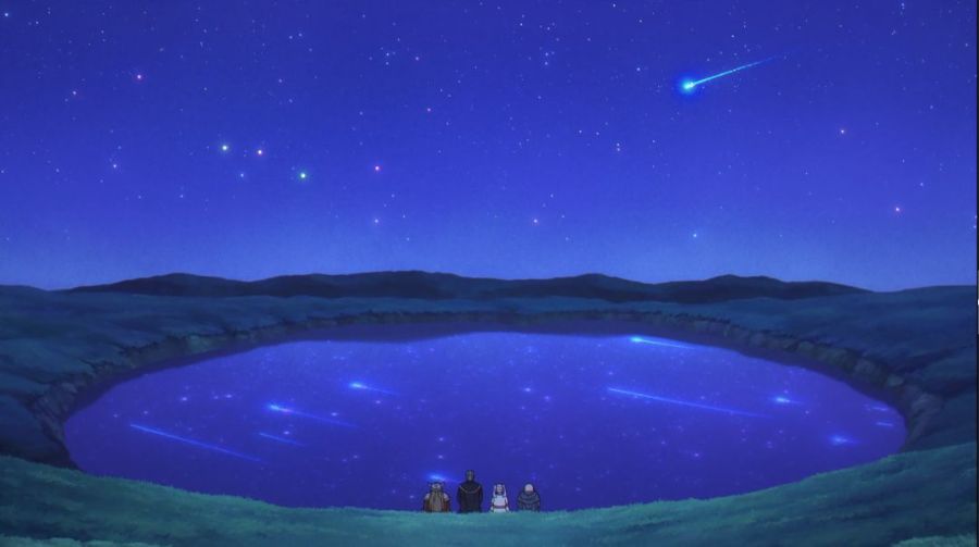 四人组一边追忆往昔岁月一边探险,终于来到了芙莉莲口中“更适合欣赏流星的地点”,一起欣赏了时隔50年的“半世纪流星”。