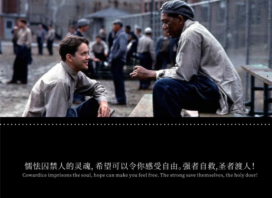 救赎,“坚强的人只能救赎自己,伟大的人才能拯救别人”,男主救了自己也救了别人,有些鸟是关不住的,他不仅要自己展翅高飞,还要解救一个笼子里的鸟,男主表面看不出野心,但内心却是野心勃勃,他想要自己出去,还要带着监狱对他这几十年的补偿出去,他为自己铺好了所有路,救赎是发自内心的,谁都不是谁的救赎,自己才是自己最好的救赎。老布的自杀是他的解脱,是对这大半生的救赎,瑞德的出狱,是他早已看淡是否获得自由后,对自己安慰的救赎,男主安迪的越狱,是他对自己清白的救赎.⋯