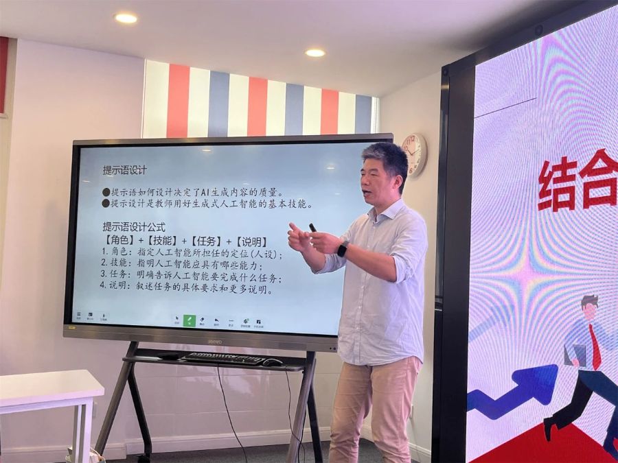 王老师着重指出,老师们在使用 AI 工具时应充分结合学生自身的特点,为学生提供具体化、个性化的适合方案,只有以学生为中心,才能让人工智能更好地服务于教学,助力学生的成长与发展。王老师指导学员们进行了现场实操。在实际操作中,学员们亲身感受到了 AI 带来的教学帮助,大家纷纷表示,将在今后的教学工作中积极运用这些新技术。