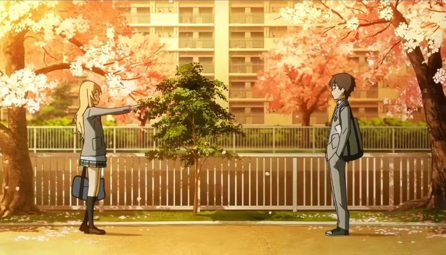 坦白说,《四月是你的谎言》故事本身并不引人入胜,情节大概是烂俗的韩剧级别,三五个分镜就能猜到故事的大致走向,甚至结构和剧情是有相当严重的硬伤的。对于现在的我这个情节至上的细节控而言,简直一丝吸引力都没,但对于年少时的我感受到的分明是温暖而幸福的感觉,某种巧妙的浪漫像铆钉一样扎进我的心里。将我的心肺撕裂,尝试了几次克制未遂之后,泪水似自来水,拧不止就让它哗哗流下。而现在,不再是学生的我,看着一群初中生的生活仍然会湿掉眼眶,至于这里面有多少是对自己的同情,有多少是对剧情的共情,我自己也不知道。我们一直都会相信,在排除万难以后,王子和公主将会执手走向既定的幸福。这是所有童话中最完美而且最理所当然的结局。