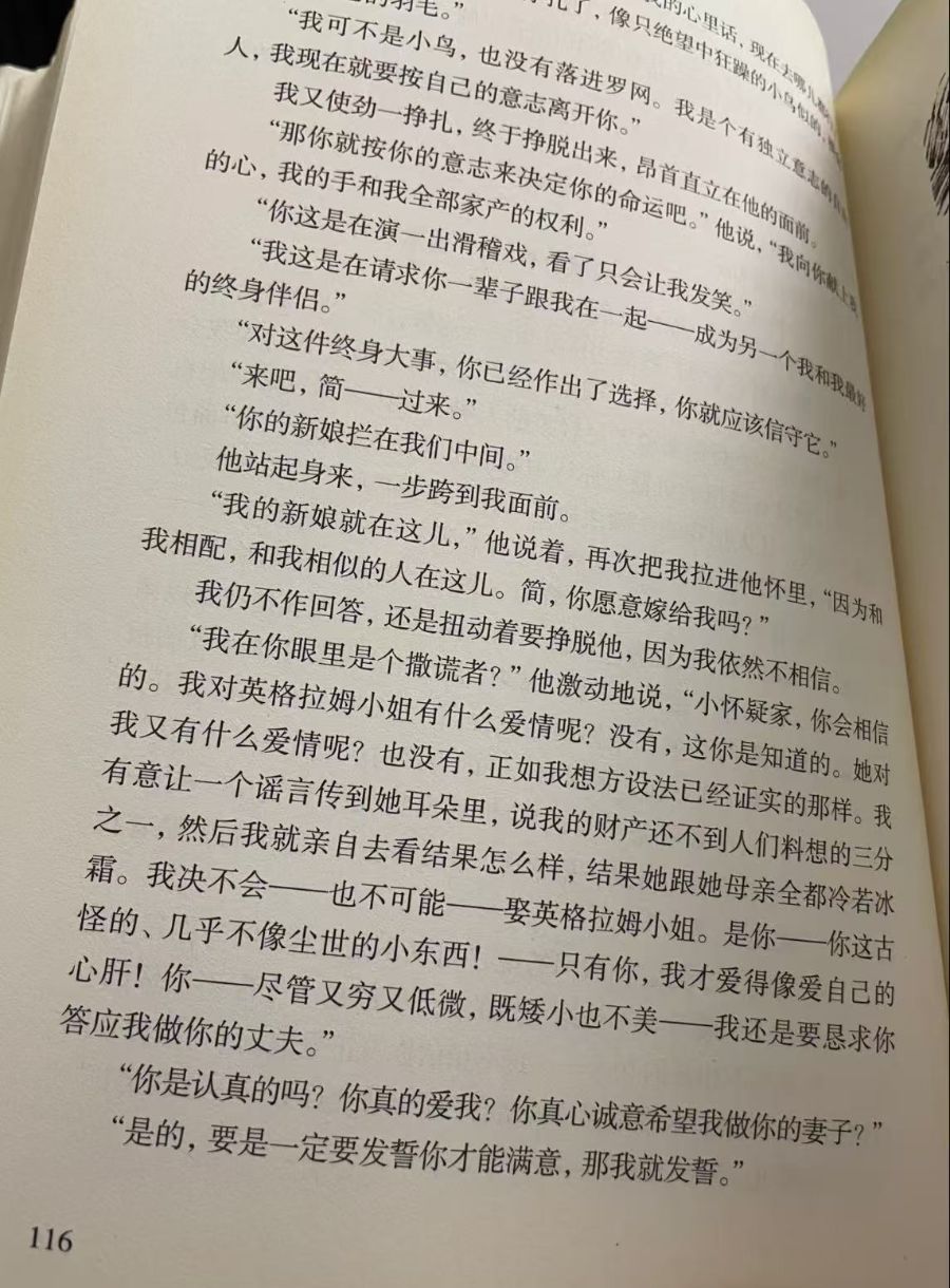 简爱的一生都在与命运抗争。在洛伍德孤儿院,她以知识为剑,劈开蒙昧的迷雾;在桑菲尔德庄园,她以尊严为盾,抵御世俗的偏见。面对罗切斯特的深情,她选择坚守内心的道德准则;面对圣约翰的求婚,她拒绝成为宗教的殉道者。每一次选择,都是对自我价值的确认,都是对独立人格的捍卫。