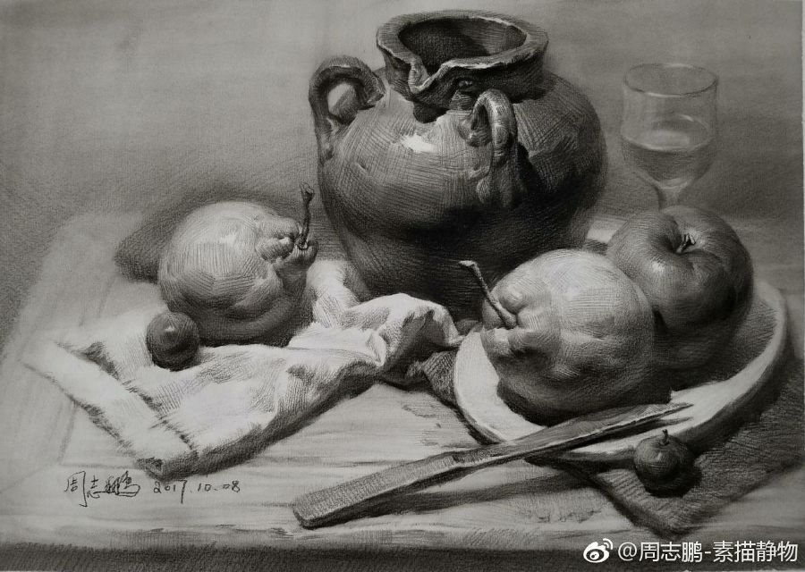 素描是一种正式的艺术创作,以单色线条来表现直观世界中的事物,亦可以表达思想、概念、态度、感情、幻想、象征甚至抽象形式。它不像带色彩的绘画那样重视总体和彩色,而是着重结构和形式。