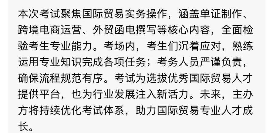 国际贸易技能考核:商品标的物主题展示纪实 6月19日,国际贸易技能考核如期举行。我们小组以“商品标的物”为PPT展示主题,开启了这场专业能力的试炼之旅。 展示前期,小组成员虽积极准备资料,可在分工与配合上存在不足,彼此间沟通不够顺畅,配合缺乏默契,在演练过程中甚至因观点分歧出现小插曲。但大家迅速调整状态,重新明确分工,互相交流想法,最终达成共识。 考核现场,主讲人率先登场,以清晰的逻辑阐述商品标的物的核心概念与重要性,其他成员适时补充案例、展示数据。尽管过程中偶有卡顿,但通过共同努力,完整呈现了商品标的物在国际贸易中的关键作用,顺利完成考核任务。此次经历让我们深刻认识到团队协作的重要性,也将成为后续学习改进的动力。