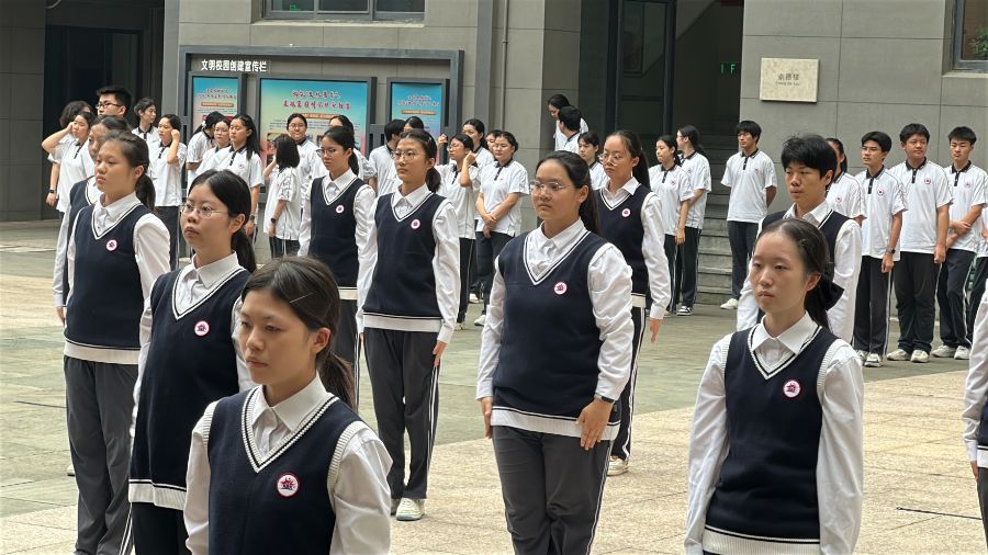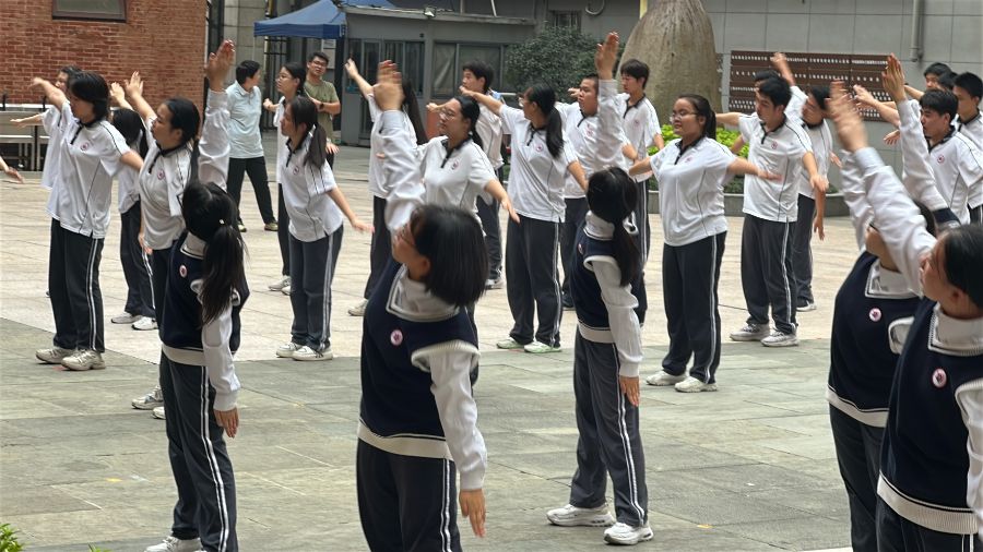 “第三套全国中学生广播体操,现在开始!”音乐刚起,我的每一根弦都绷紧了每一次抬手时盯着指尖是否贴近耳朵,踢腿时感受膝盖绷直的酸胀,每一个转体都都跟着节拍分毫不差。