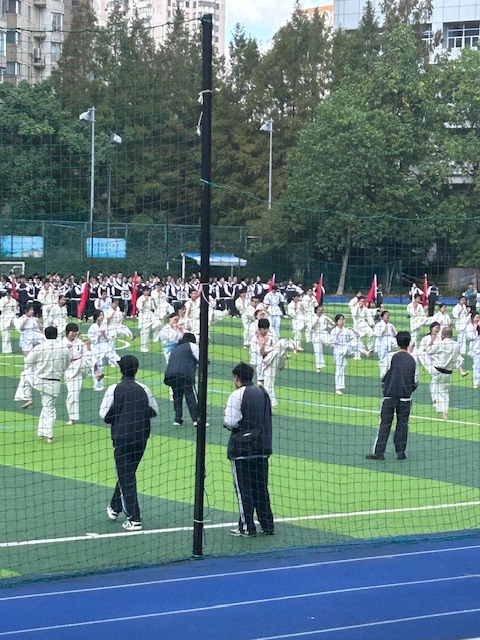 而后的班级展示环节,可谓异彩纷呈。最令我难忘的是那场球操表演,色彩斑斓的篮球在同学们手中跳跃、飞舞,划出一道道充满活力的弧线,宛如律动的彩虹。压轴登场的跆拳道表演更是气势如虹,队员们喝声震天,踢腿凌厉,一招一式间尽显力量与刚毅,将开幕式推向了高潮。