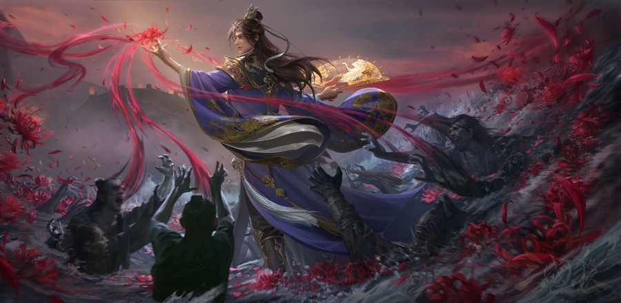 可惜天妒英才,他在建安元年(公元196年)便英年早逝,年仅三十余岁。他的离世让曹操痛失臂膀,致信荀彧哀叹“自志才亡后,莫可与计事者”,后荀彧才又举荐郭嘉接替其位。在三国杀的“刹那绽华”皮肤中,他以彼岸花为引,尽显舍身辅主、刹那芳华的悲壮风骨。