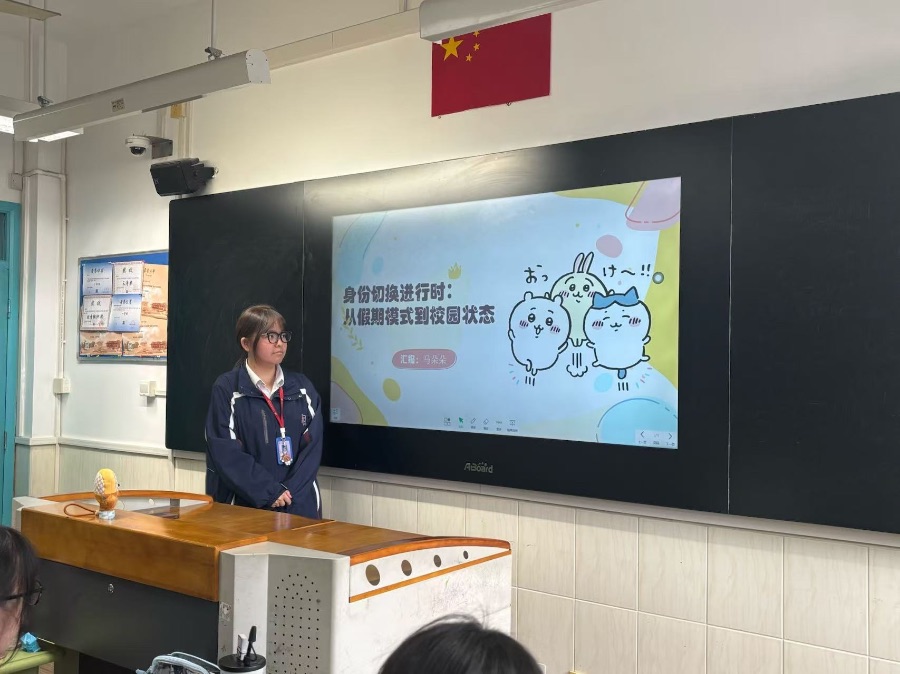 本周的主题班会由马朵朵同学主持。班会以“身份切换进行时:从假期模式到校园模式”为主题,旨在帮助同学们快速调整状态,顺利回归校园学习生活。