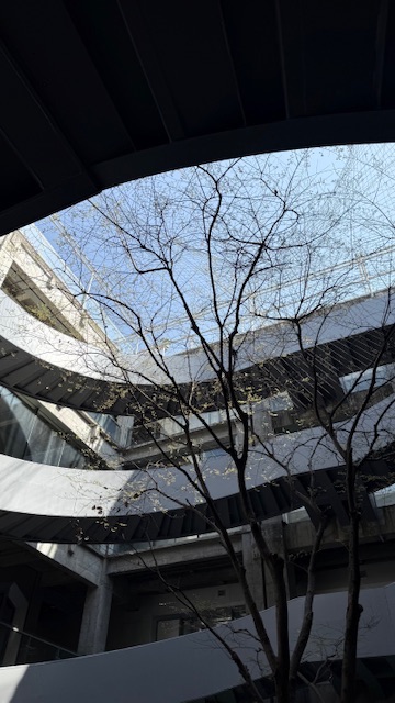 这方视角下的场景,像是都市里的隐秘角落。螺旋楼梯象征着向上的路径与循环的时光,而春日新枝则预示着生机与希望。身处钢筋水泥的建筑中,自然的绿意依然能穿透缝隙生长,让每一次仰望都能遇见温柔与力量交织的瞬间,定格出独属于都市春日的浪漫与诗意。