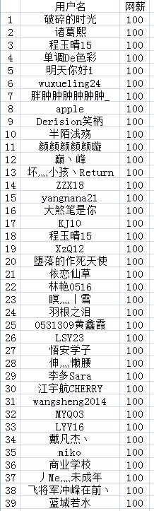 9月10日今日话题网薪奖励名单如下,网薪均已发放。