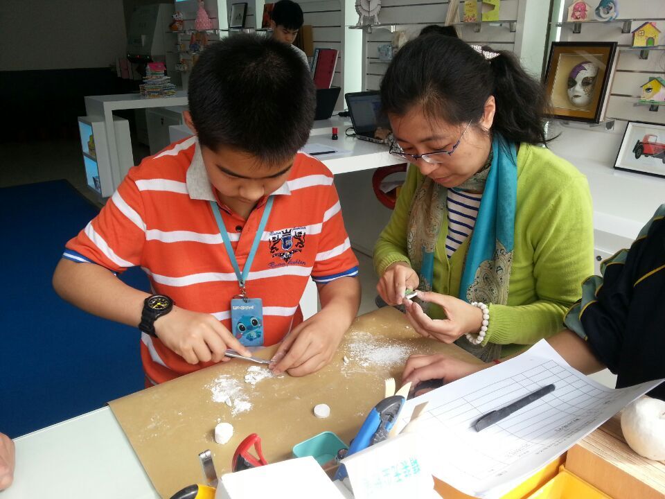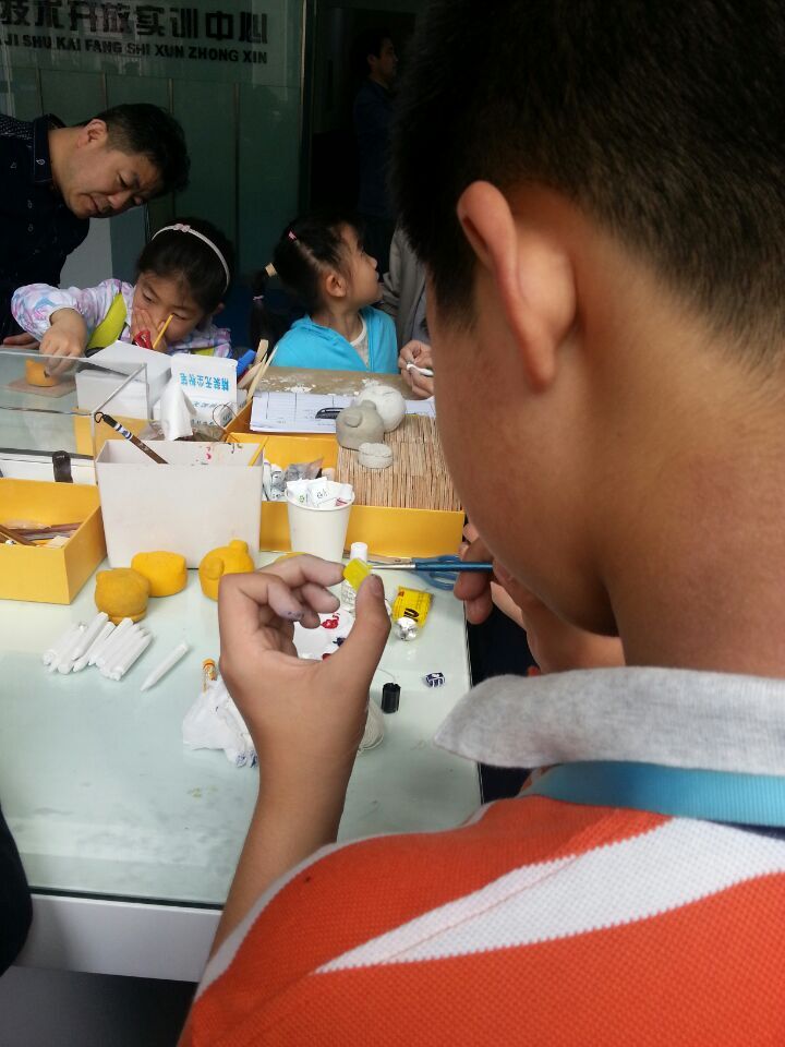 粉雕社的精美作品吸引了不少的小朋友,他是今天的第一位体验者,我们记录下他雕刻的所有过程。