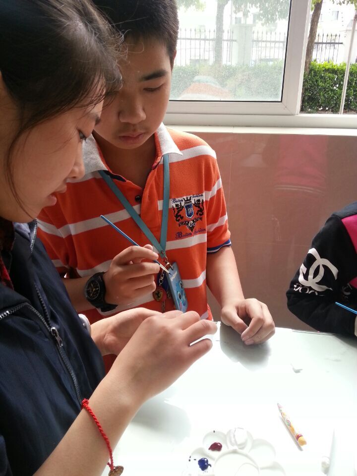 在老师的指导下,他拿起小刀,模仿着作品,全神贯注的进行雕刻。
