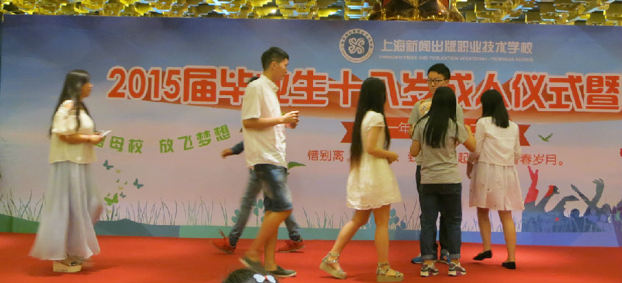 2015年6月26日,2012届毕业生相约在松江月湖雕塑公园,举行2015届“上海新闻出版职业学校十八岁成人仪式暨毕业典礼” ,9:30分,十八岁成人仪式暨毕业典礼正式拉开序幕。
