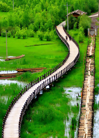 横跨草海的走婚桥,被誉为“天下第一爱情鹊桥”。来到泸沽湖的人,都不会错过这道美景。一个民族的婚恋传统,被这座建筑映照着。走在古老的走婚桥上,不禁联想那些夜晚才能见面的爱人喜悦的模样。300米的桥,像渴望的手臂伸展到对岸,不知道有没有摩梭女子,在黄昏后到桥上来迎候她的爱人?