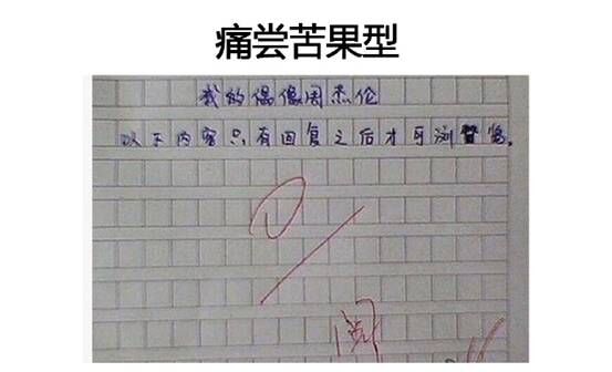 再不认真听课我是猪,再回家看电视我是狗,学习不刻苦,回家卖红薯。