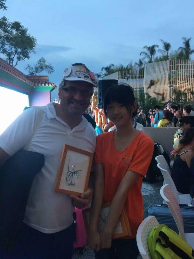 我们在介绍中华文化,我们在展示中华文化,我们在弘扬我国文化!展台前不断的有来自各国的友人驻足观看、聆听,他们情不自禁的赞叹使我们油然而生一种自豪——身为中国人的自豪!看着身边的伙伴、老师,其他学校的同学、老师,每一个人都尽职尽责地工作,不惧高温,不惧疲倦,因为仅仅是“中国”二字,我们就无怨无悔!